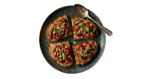 Geröstetes Brot, Tomaten, Knoblauch, Basilikum, Olivenöl